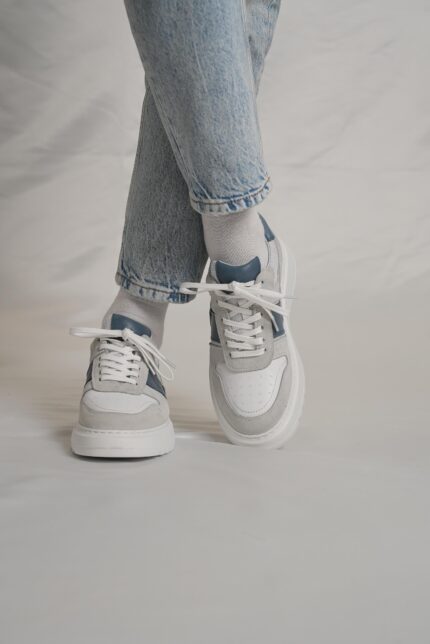 Denzel White And Blue Leather Men’s Sneakers