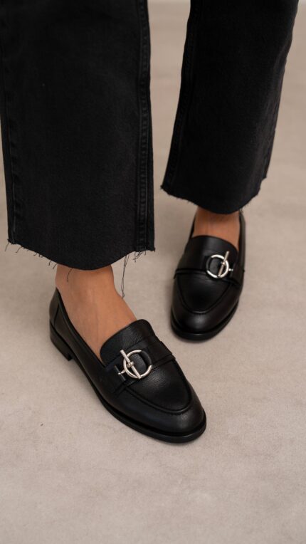 AVELINE Black Leather Women’s Loafer