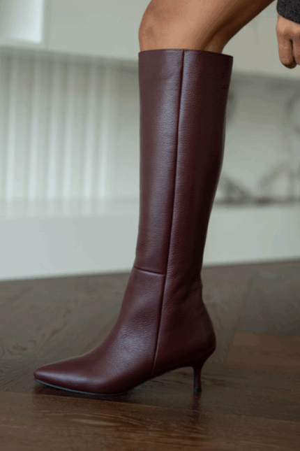 AMOUR Burgundy Leather Women’s High Boots