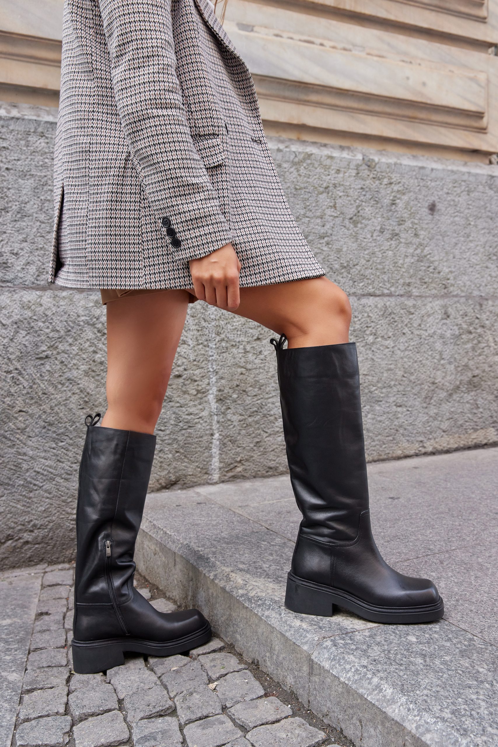 - The model wears size 38.
