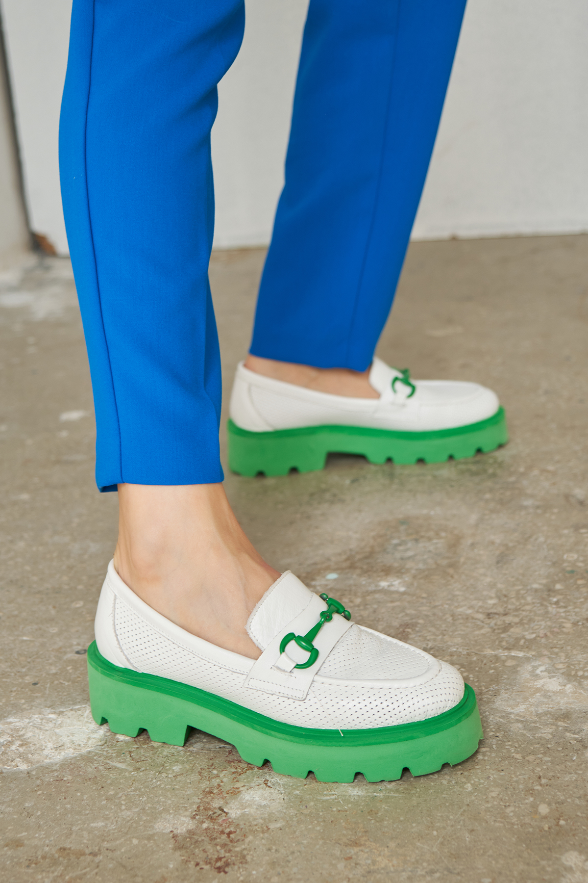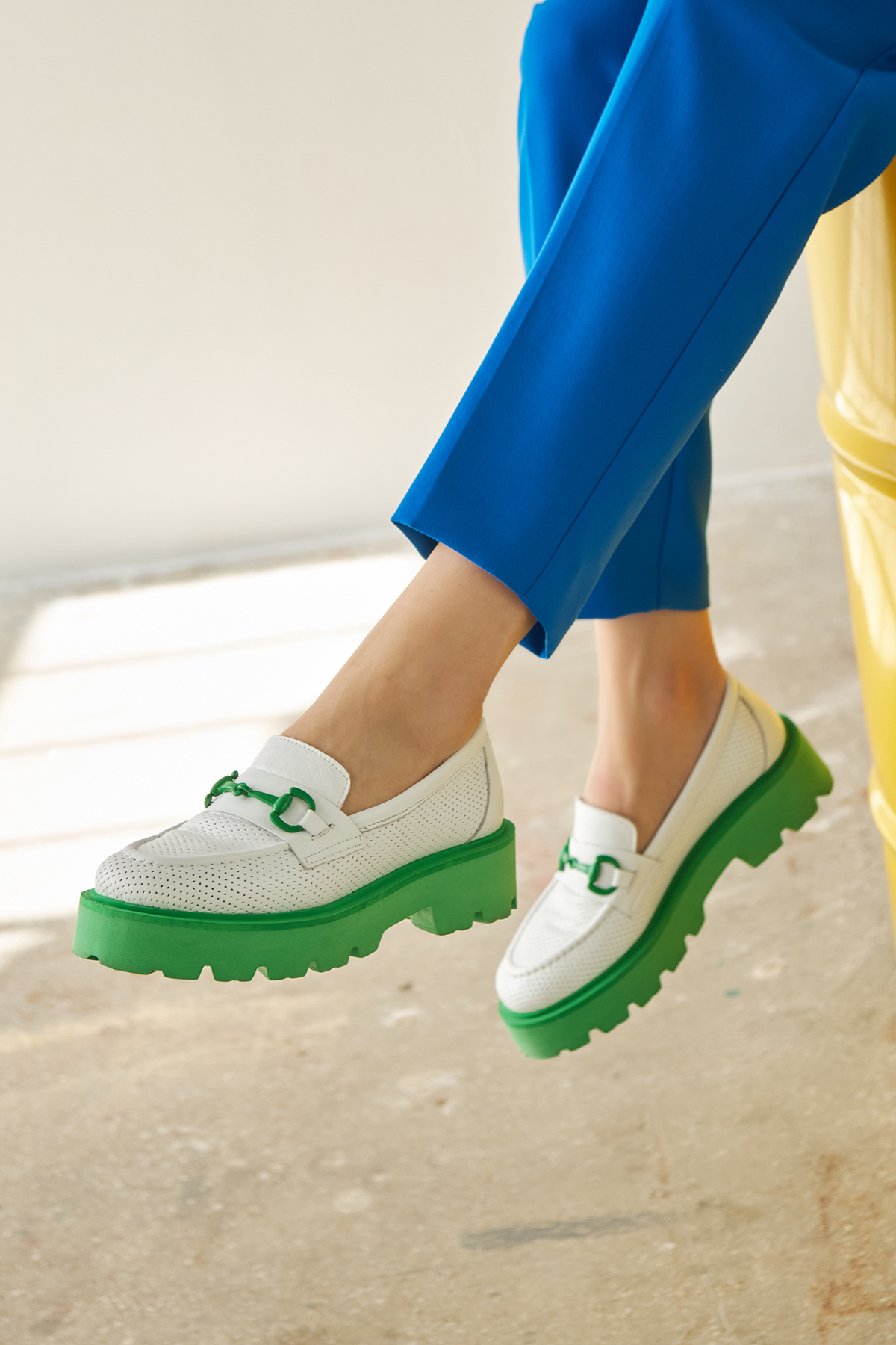 Home Discounts 50% Discount VANA White Green Leather Women’s Loafer